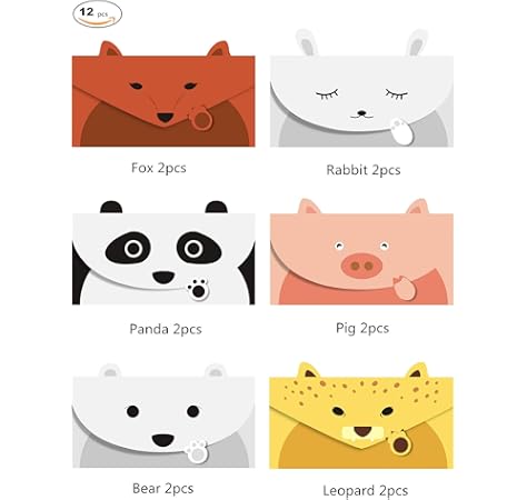 Jinsray Cute Lovely Animal Cartoon Design Letter Writing Stationery Paper Greeting Card Invitation Card Thank You Card Size 6 3 X 8 3 Paper 12 Pcs Set Panda Bear Fox Leopard Pig Rabbit Greeting